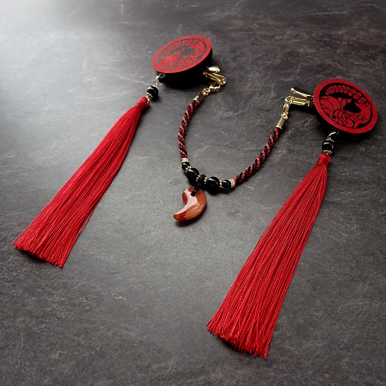【受注生産】九尾の狐 二条藤紋の羽織紐 赤×黒