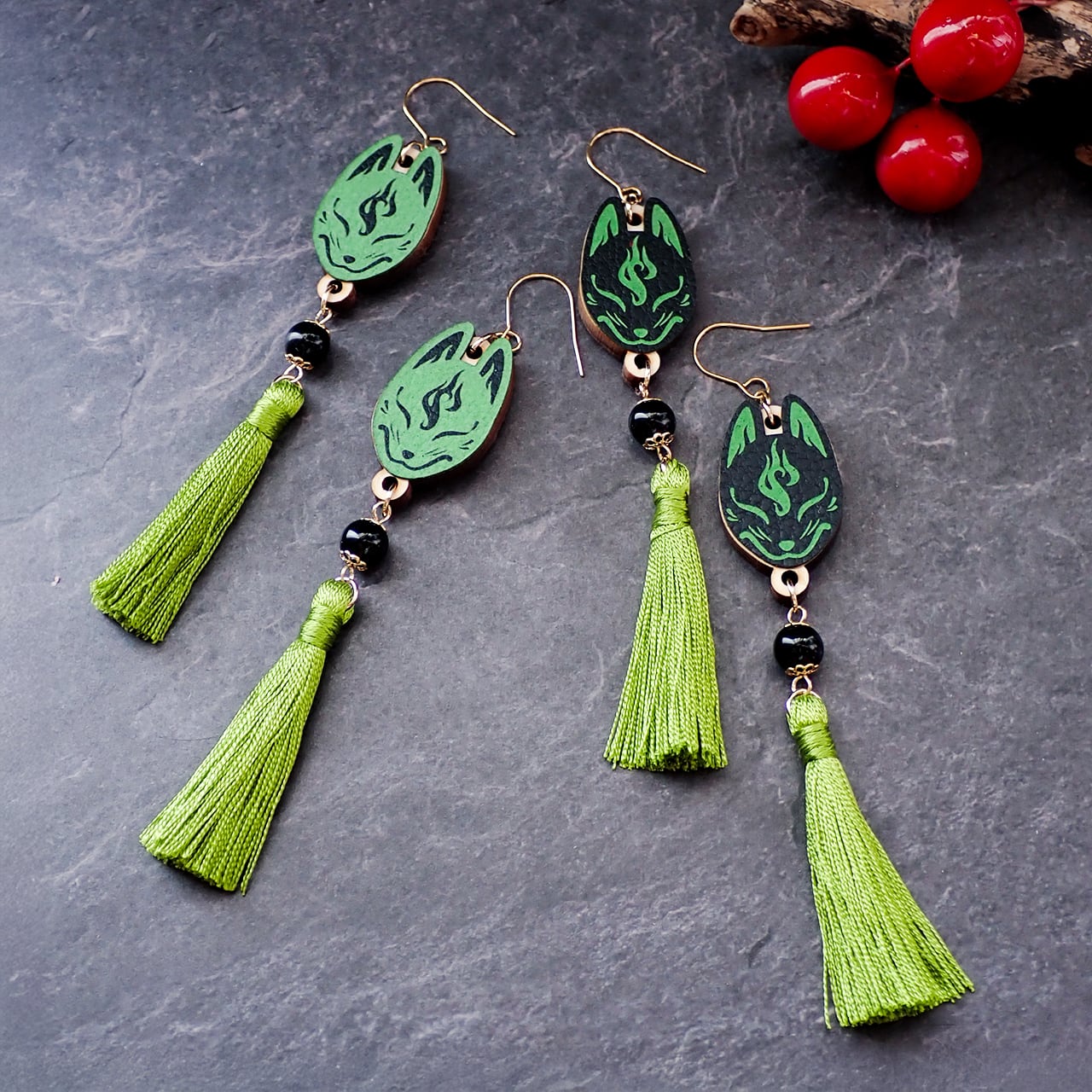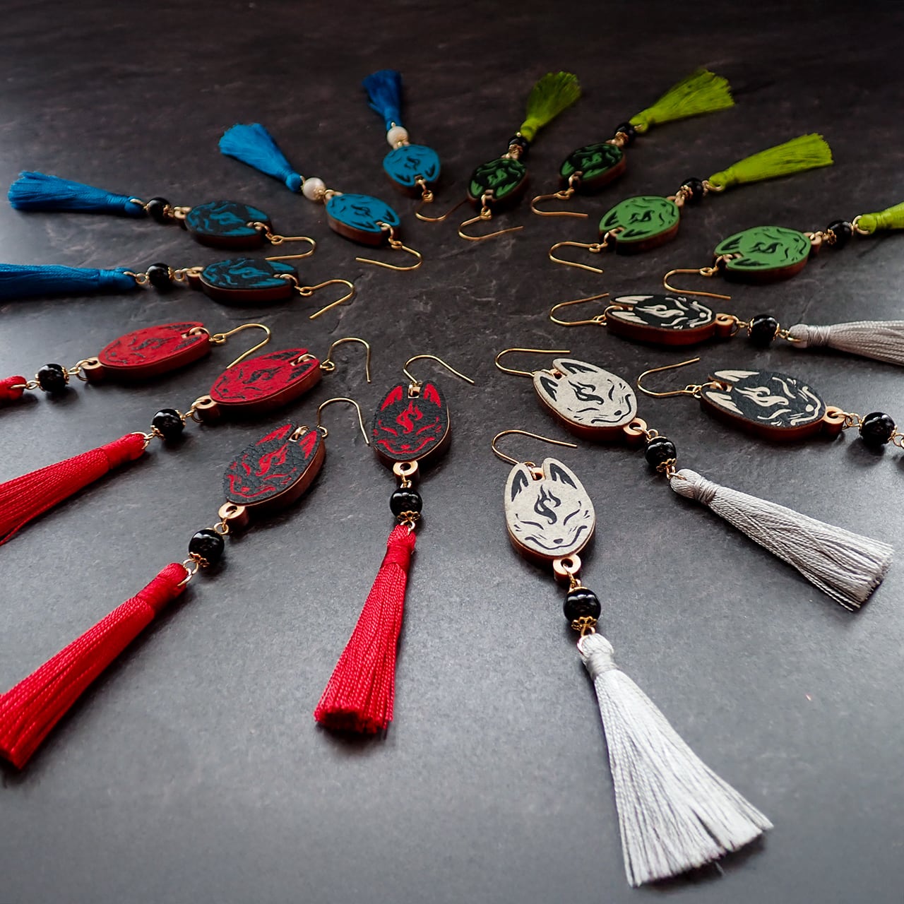 「狐面と狐火の耳飾り」とは狐面に色が入ることで