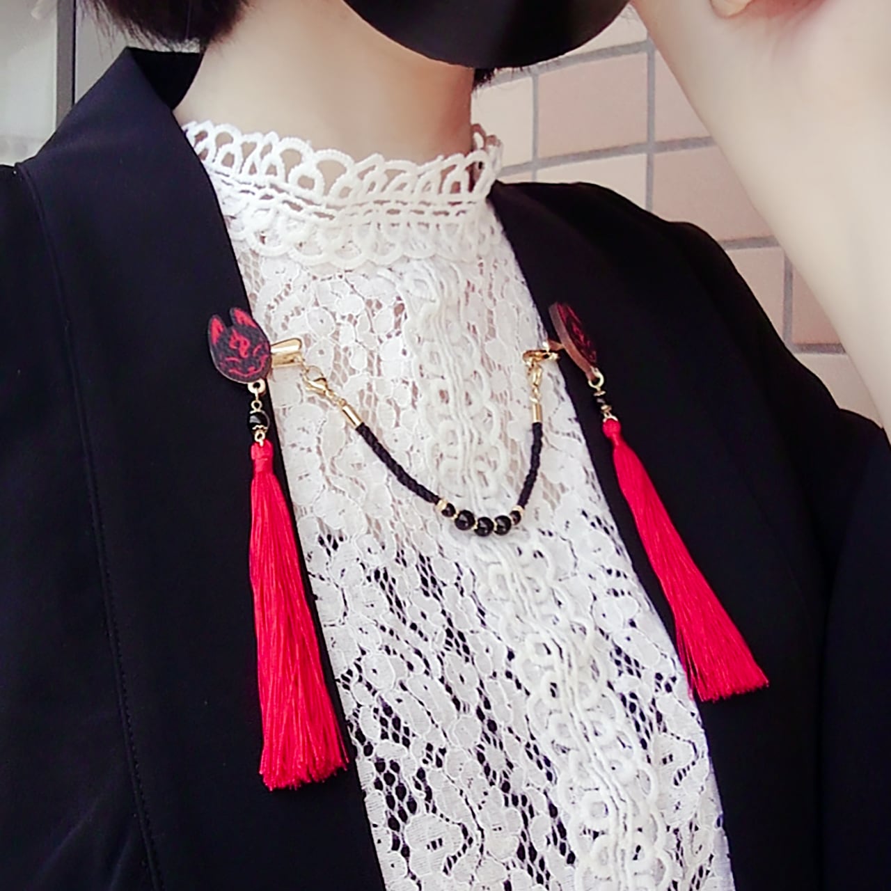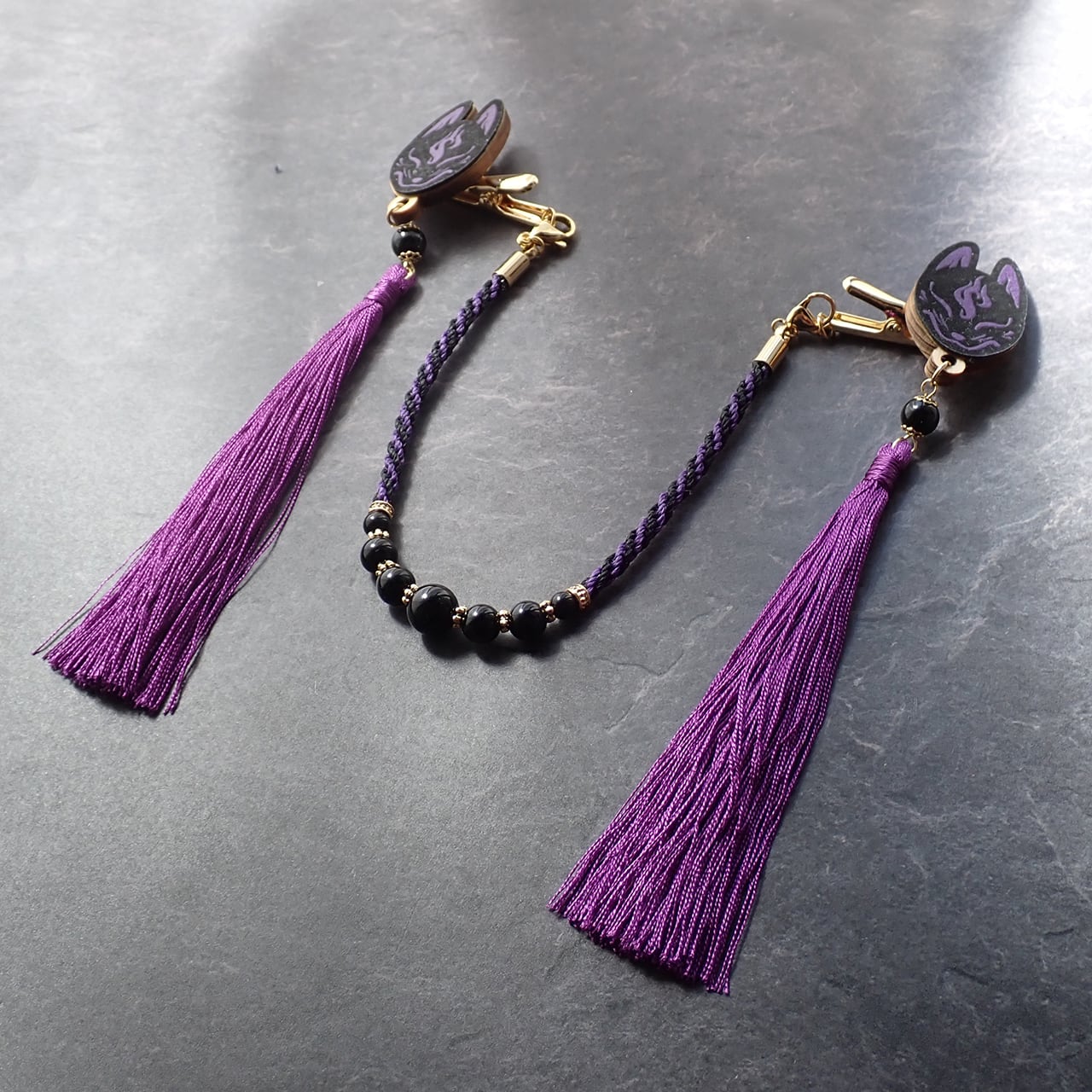 【受注生産】狐面の羽織紐 黒×紫