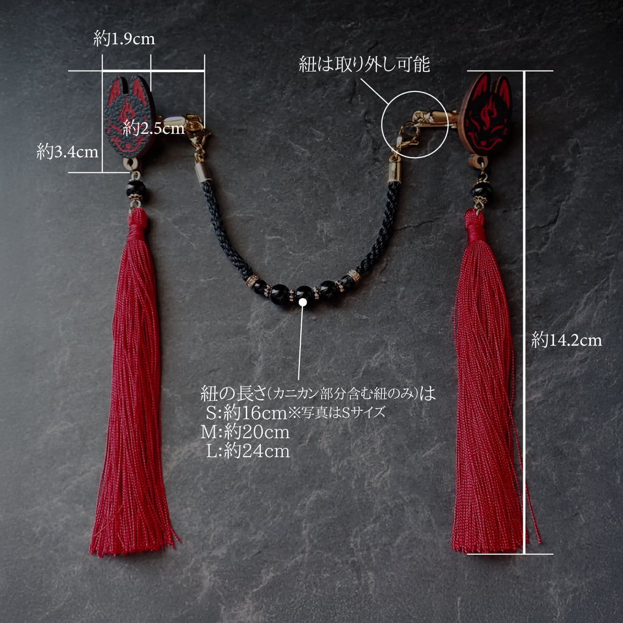 S:約16cm(カニカン部分含む紐のみ)※着用画像は2枚ともSサイズ
