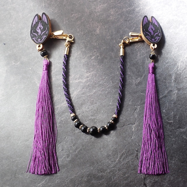 【受注生産】狐面の羽織紐 紫×黒