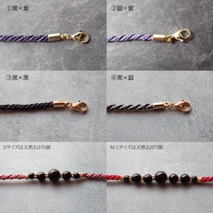 素材:ヨシノヒノキ・PUレザー・メッキ金具・オニキス(染色)・マクラメコード(蝋引き紐・ポリエステル)・絹糸