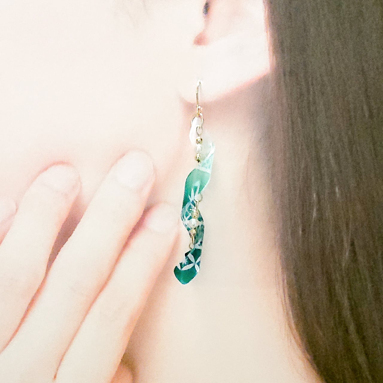 水流-つる- 切子柄(緑)のイヤリング・ピアス
