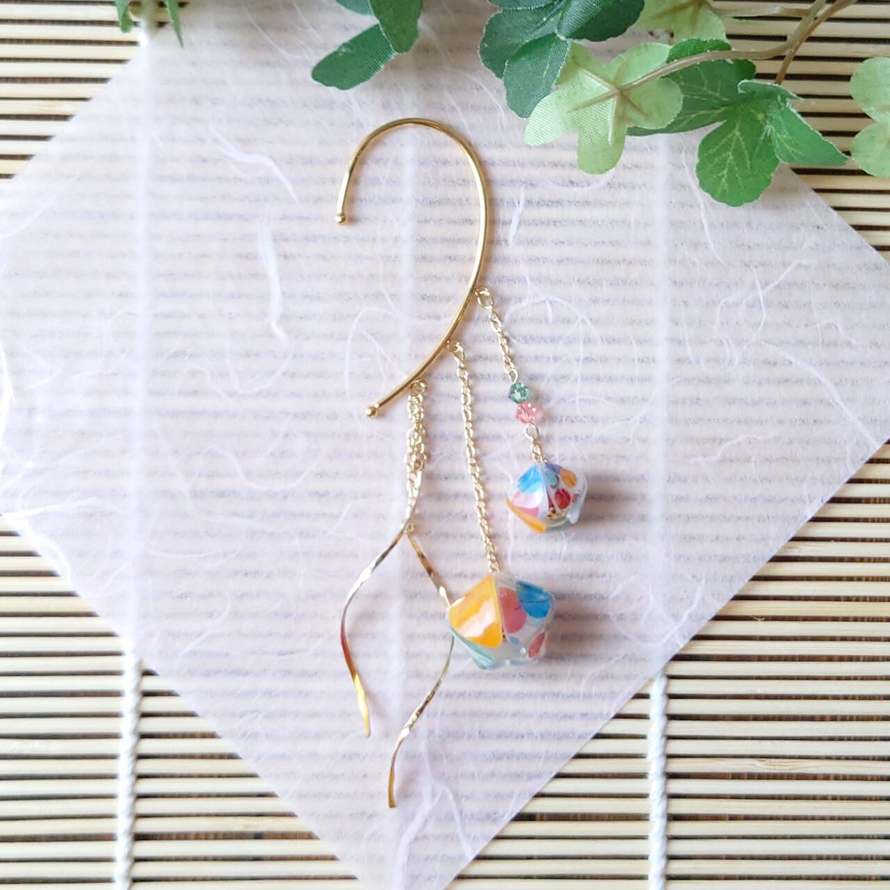 素材にプラ板をパーツとして使用しておりますので非常に軽く、着けていても疲れを感じることはありません。