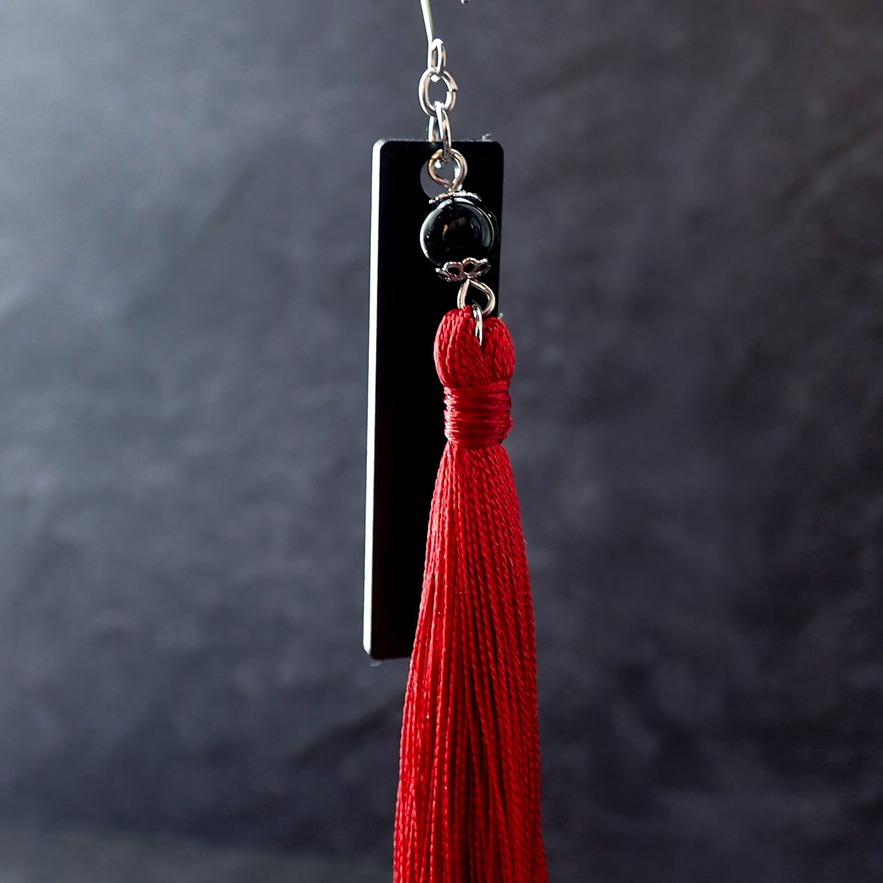 存在感のある赤い絹糸タッセルがアクセントとなり、